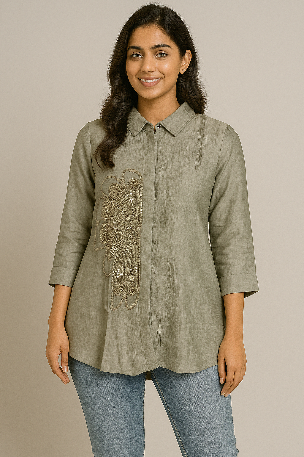 Elevate your wardrobe with these premium shiny colored tops featuring exquisite silver embellishments on the right side. Crafted for a refined look, the elegant silver detailing adds a sophisticated touch, making these tops ideal for both festive occasions and stylish everyday wear. The high-quality fabric ensures comfort while maintaining a polished appearance. Perfect for those who appreciate subtle luxury and expert craftsmanship.
